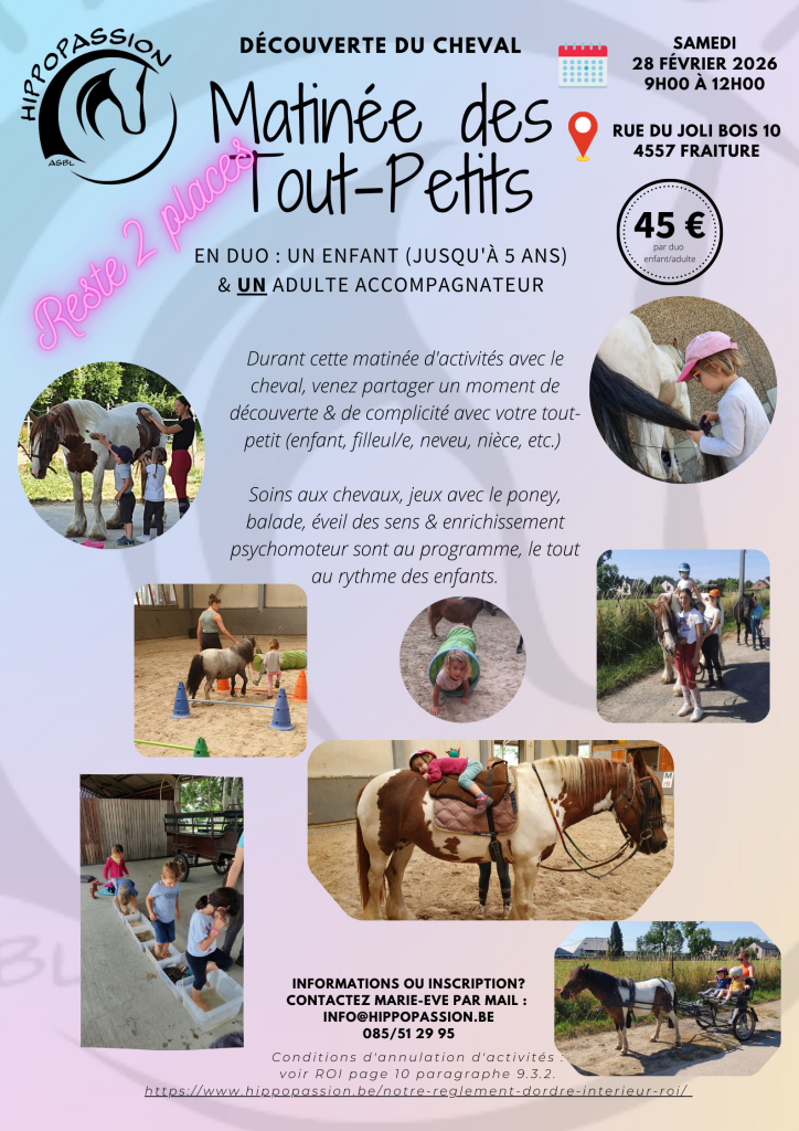 Infos et inscriptions : info@hippopassion.be Si vous désirez nous faire une demande pour une animation pour votre école, centre, maison de repos, un anniversaire… merci de nous envoyer un mail à info@hippopassion.be